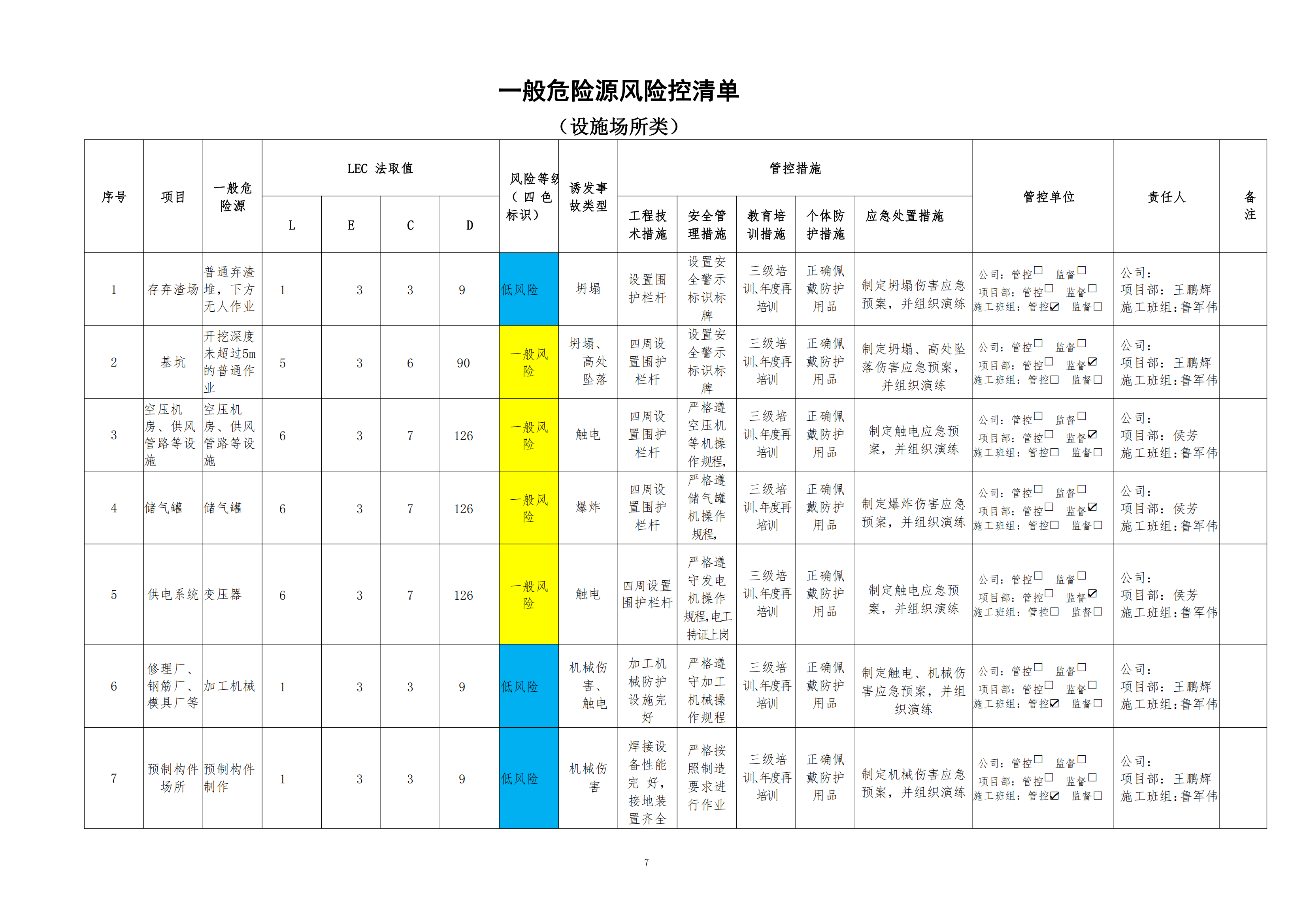 欒川縣新建水庫一期工程施工一標段危險源風險分級管控清單(4月)