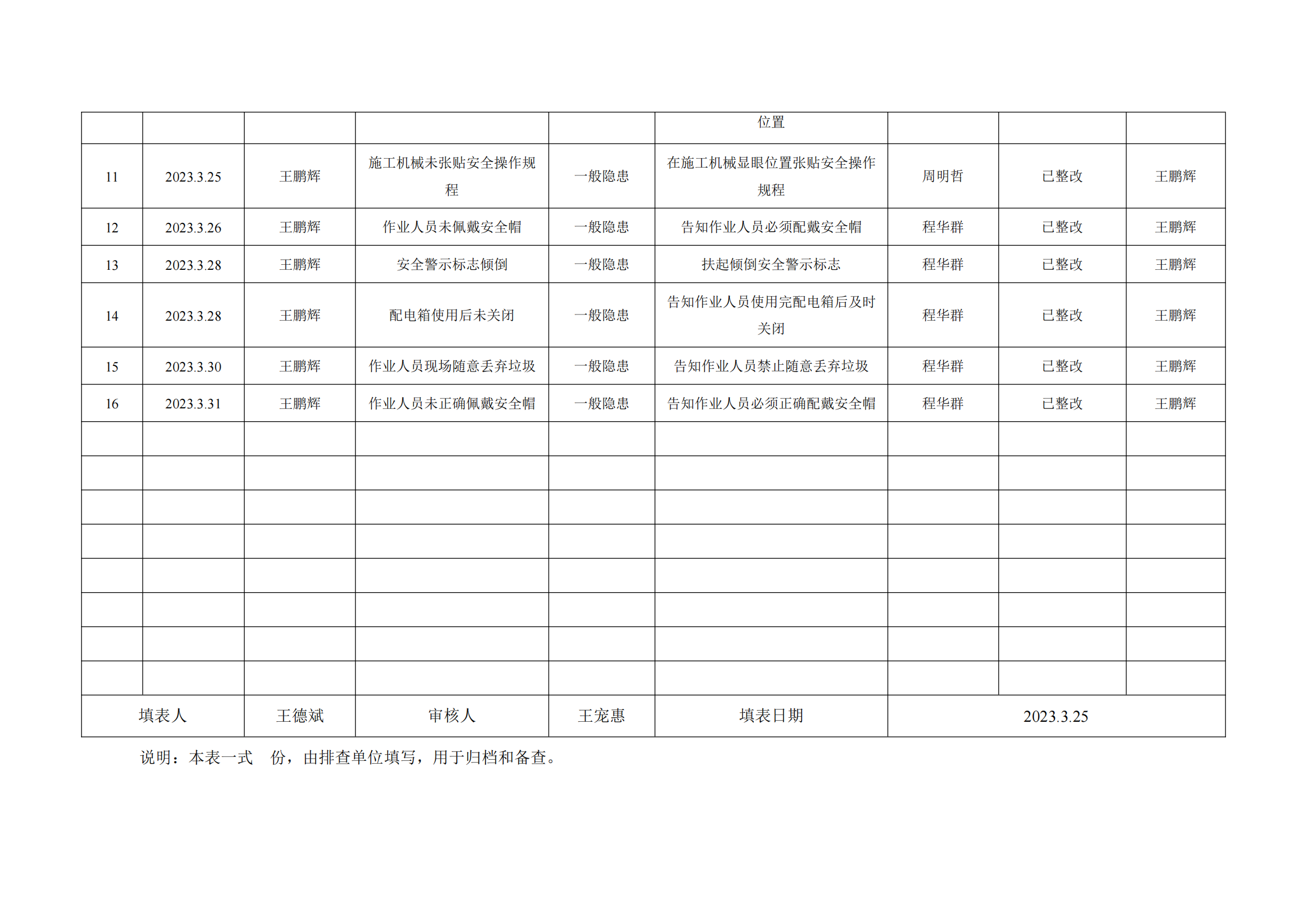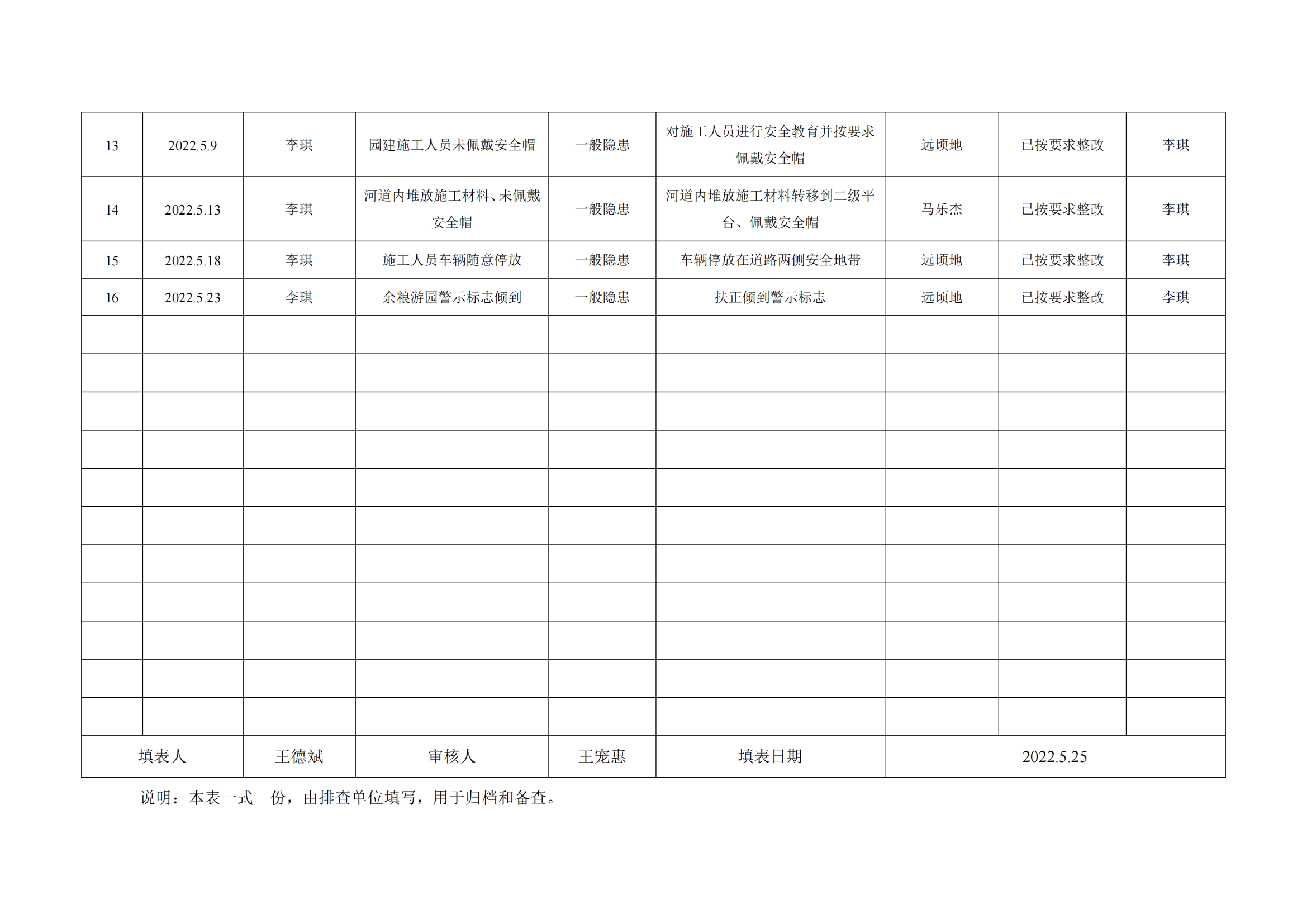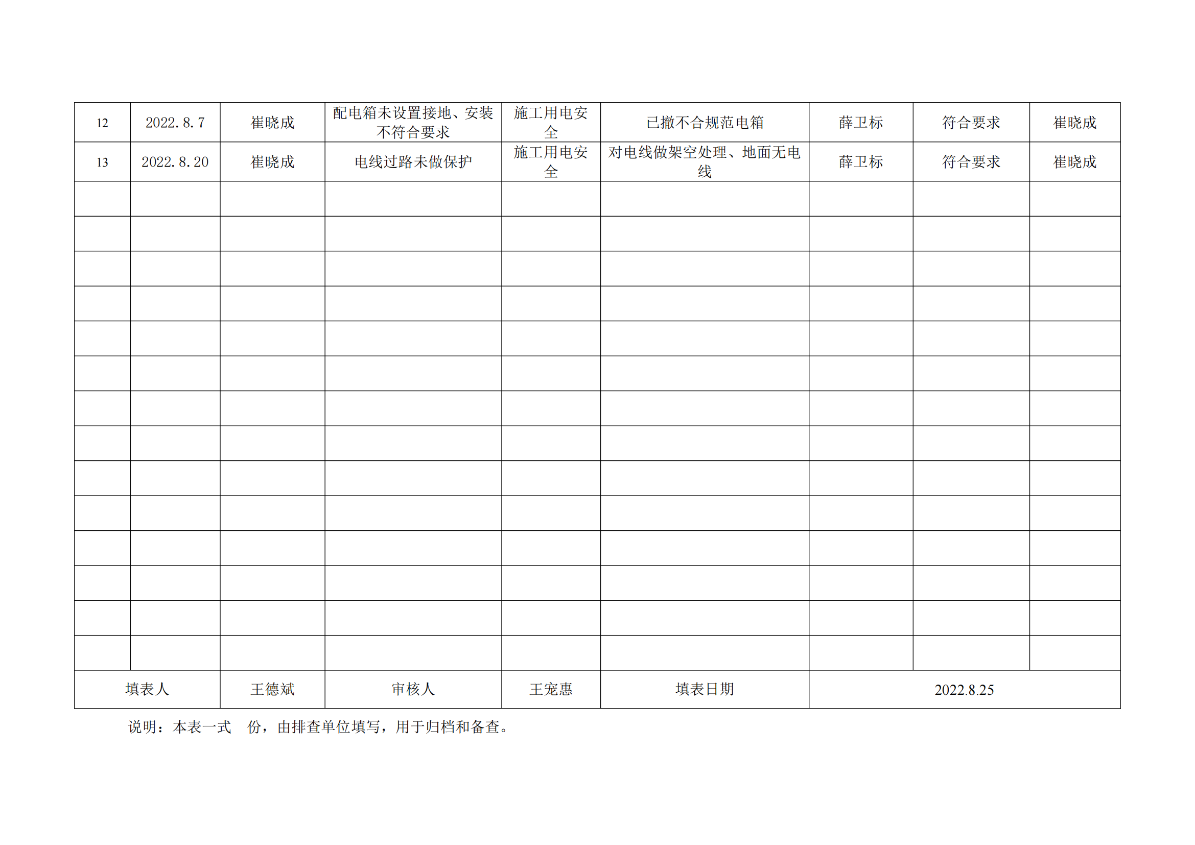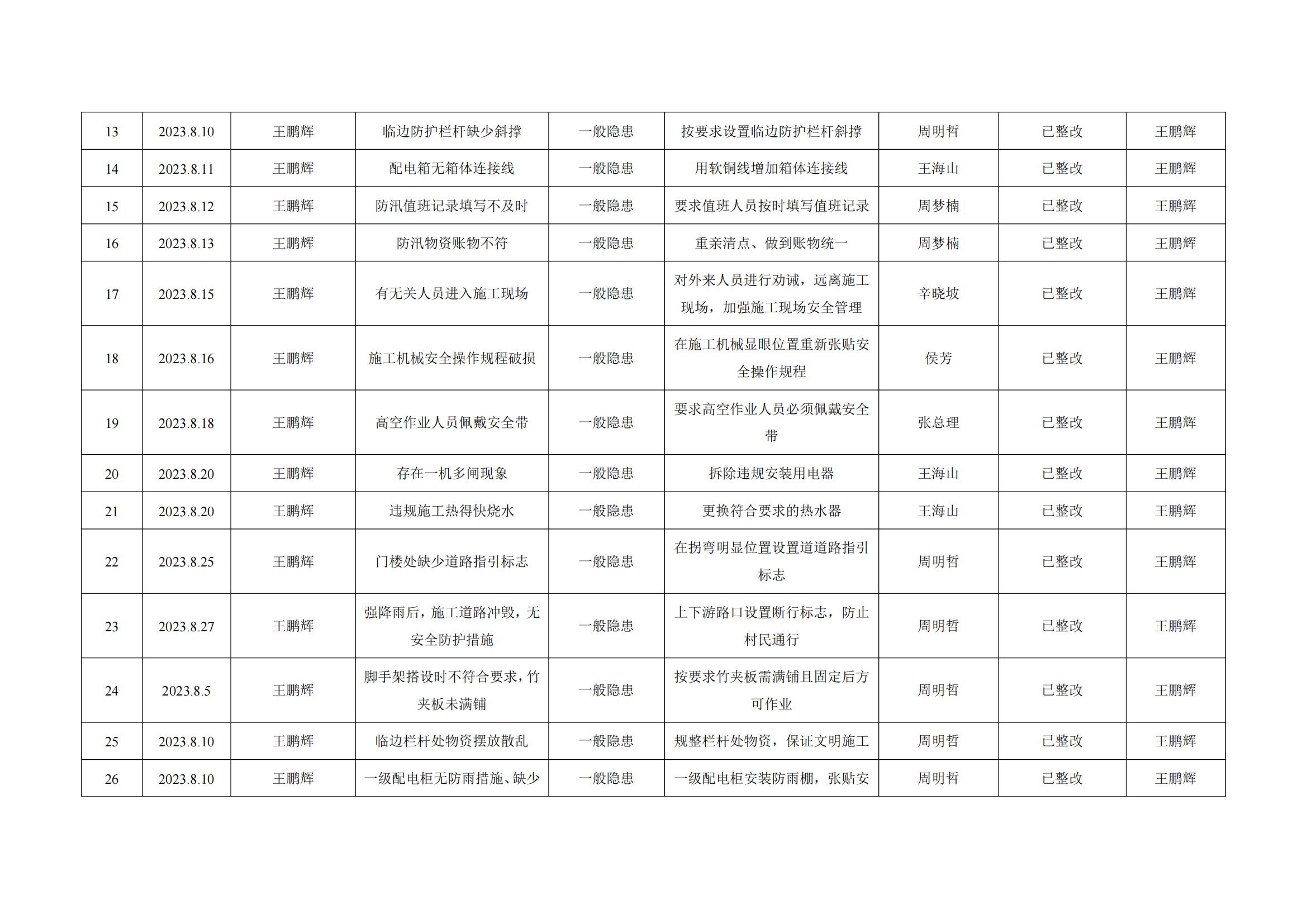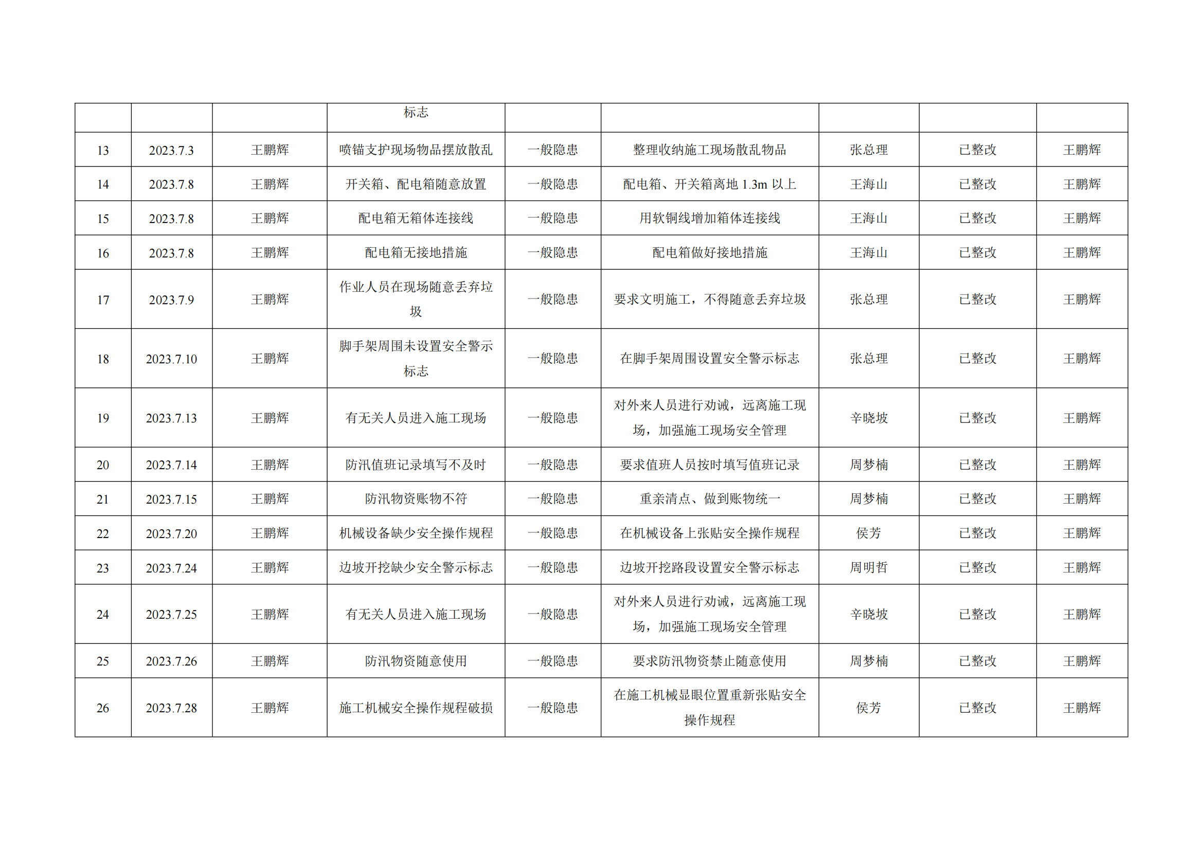 公司匯總事故隱患排查記錄匯總表