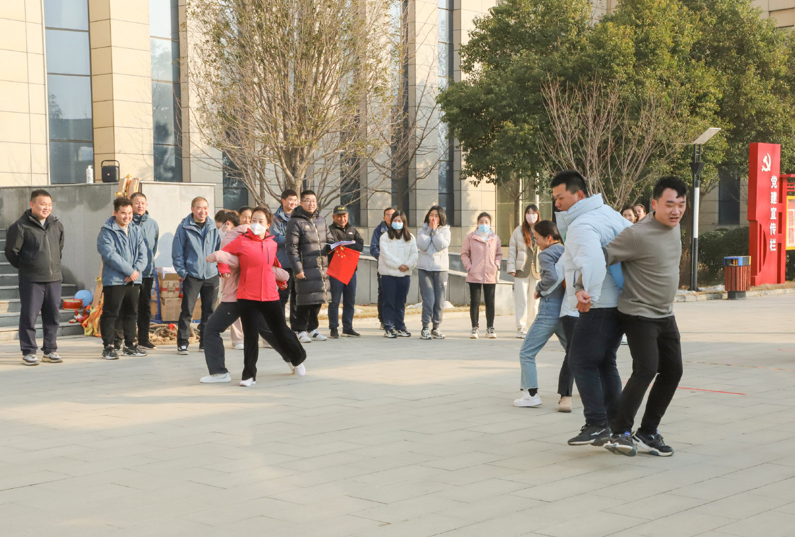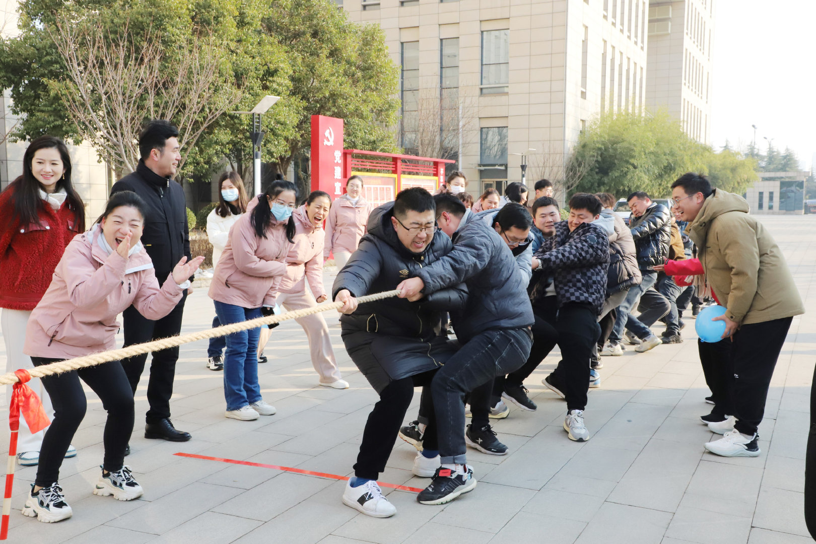 數(shù)九寒冬興賽事,熱情似火融冰雪。12月26日上午,公司在辦公大廈前廣場(chǎng)舉辦“喜迎元旦”趣味運(yùn)動(dòng)會(huì),公司機(jī)關(guān)和項(xiàng)目80余名員工參與了此次活動(dòng)。公司常務(wù)副總經(jīng)理成益洋、紀(jì)委書記段曉平、監(jiān)事會(huì)主席孫海晶、總經(jīng)濟(jì)師暢瑞鋒、副總工華忠等領(lǐng)導(dǎo)親臨賽場(chǎng),為運(yùn)動(dòng)員加油助威。