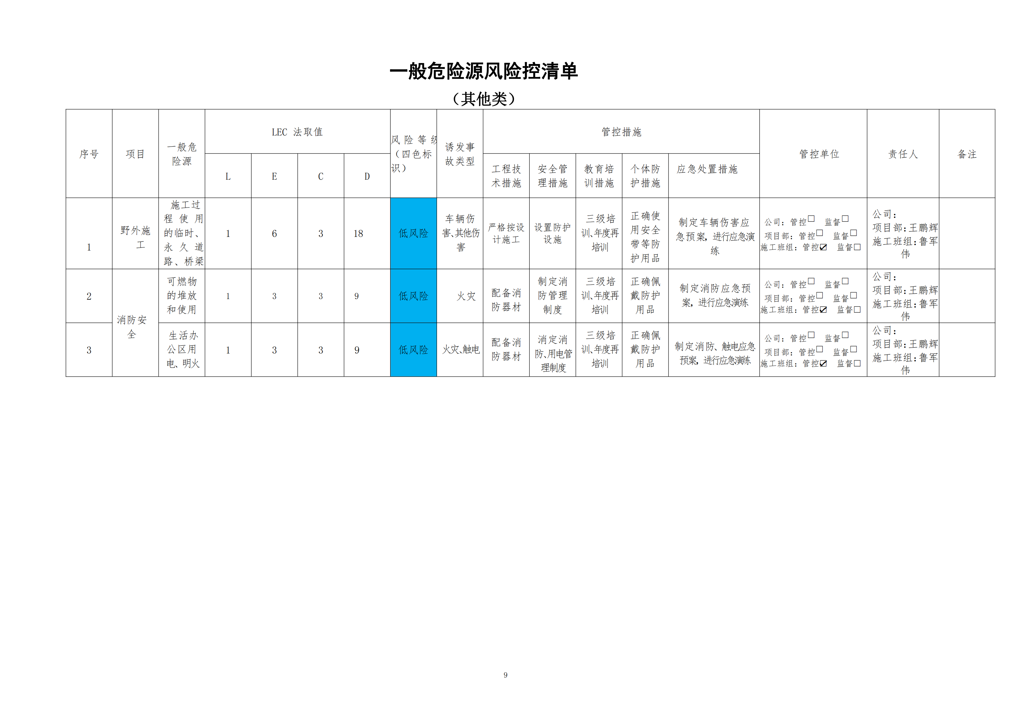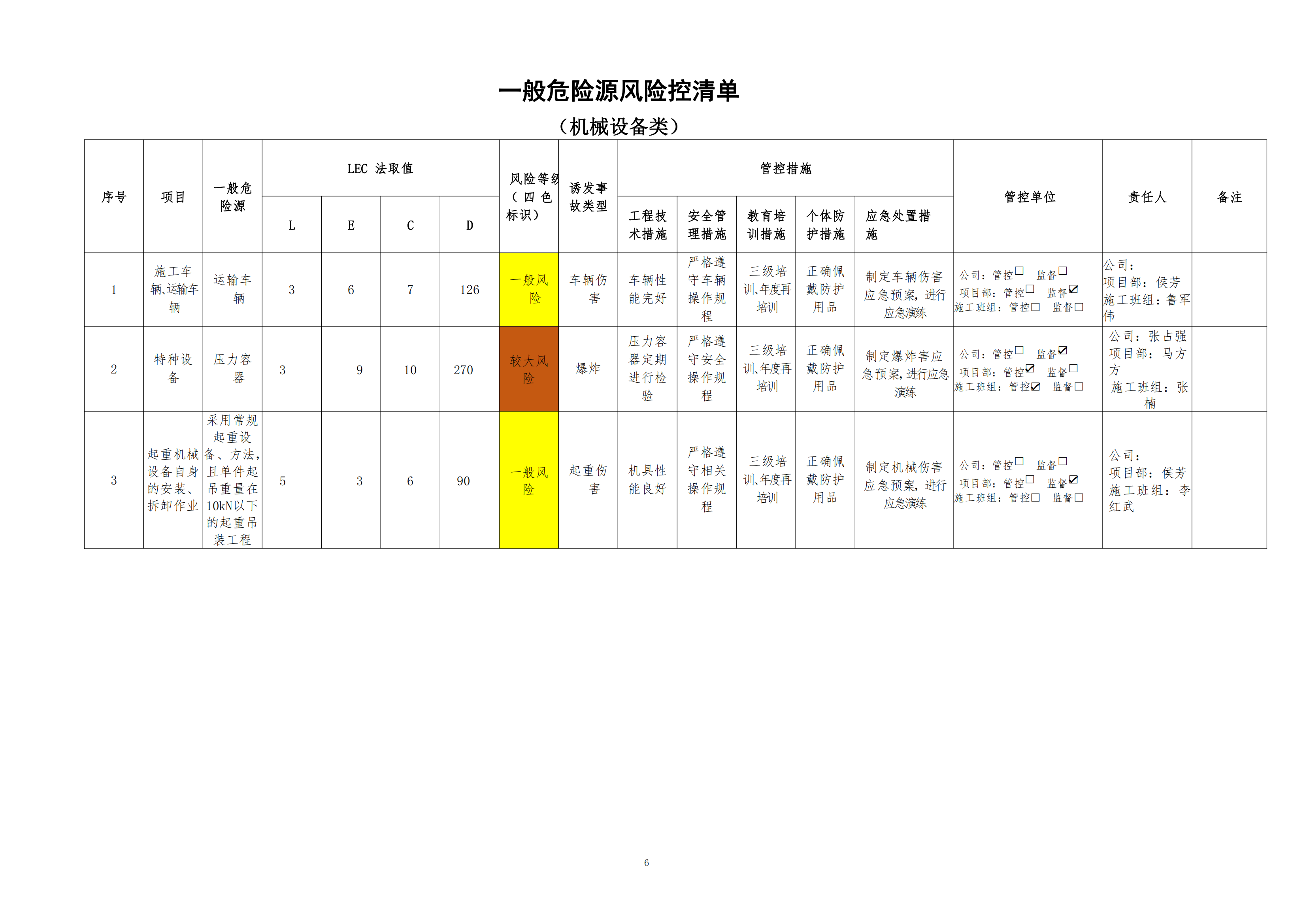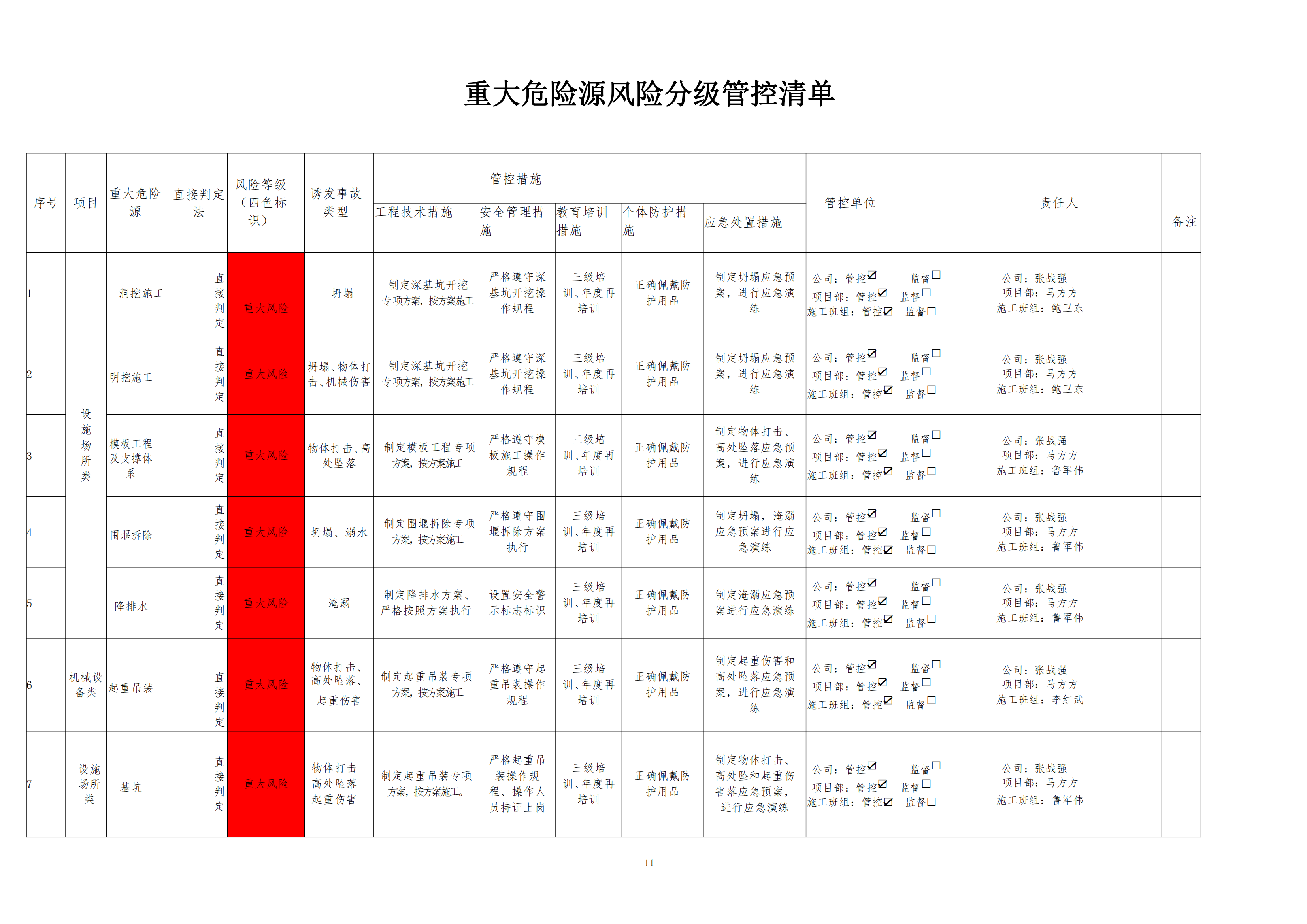 欒川縣新建水庫一期工程施工一標段危險源風險分級管控清單(7月)