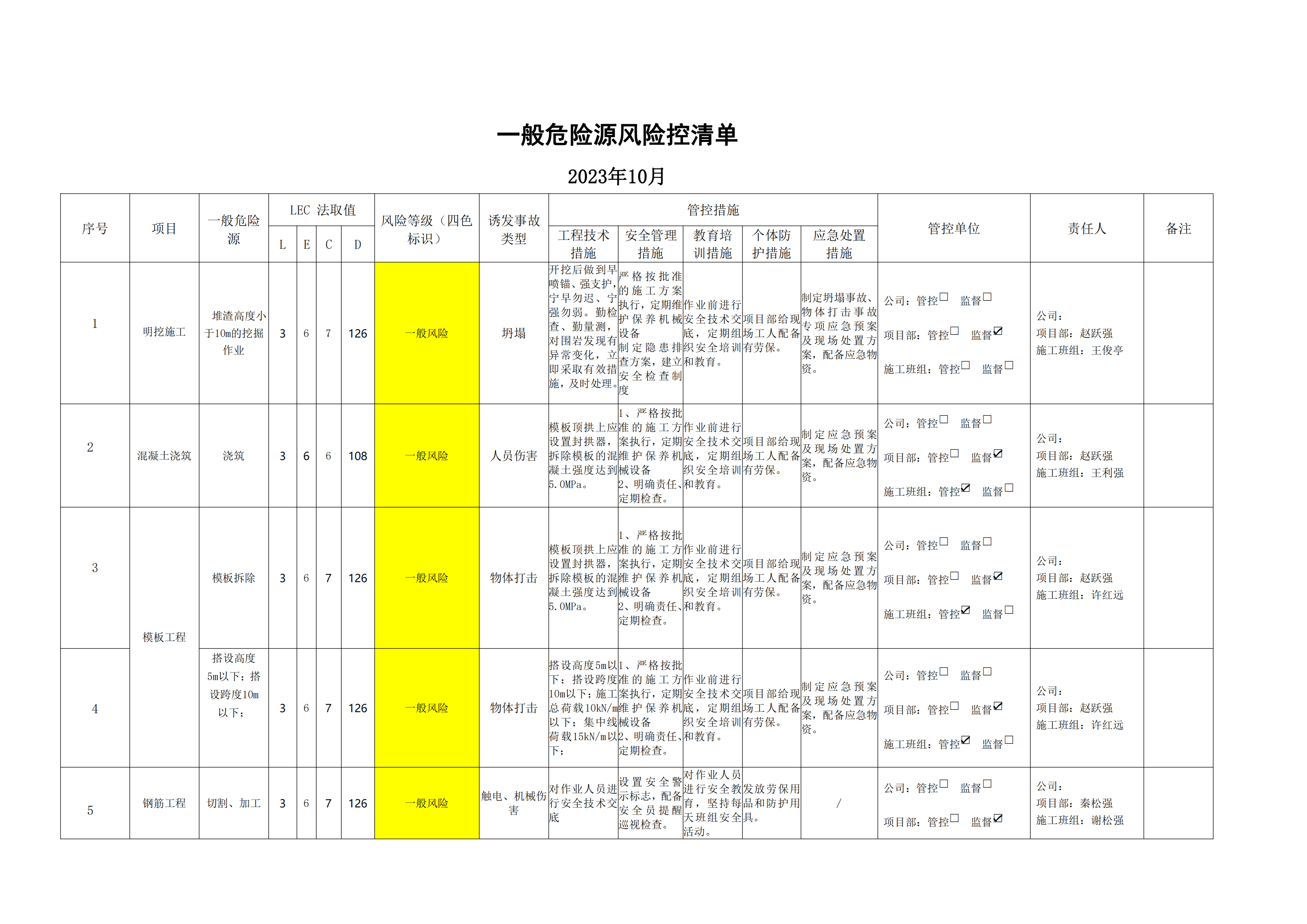 小浪底南岸灌區(qū)7標(biāo)項(xiàng)目危險(xiǎn)源風(fēng)險(xiǎn)分級(jí)管控清單(10月)